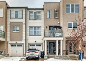 Welcome to this corner-unit townhome in the Canals community of Airdrie. This home offers 3 bedrooms, 2.5 bathrooms, a single attached garage, and a full driveway. The open-concept main floor , large windows, and a modern kitchen with quartz countertops, stainless steel appliances and drawers, and a central island.