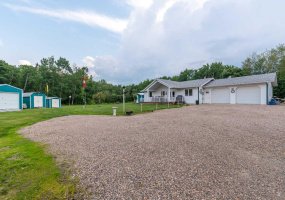 Discover your dream property on Lakeshore Drive at the picturesque Brightsand Lake, SK. This immaculate bungalow spans over 1,300 sq. ft. on a sprawling 23.7-acre estate, offering pristine grounds and a serene lifestyle. Interior features include vaulted ceilings, providing an airy, spacious feel. Vinyl plank flooring throughout offers easy maintenance and modern appeal.