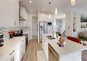 Welcome to your ideal family retreat! This thoughtfully designed detached home features 5 bedrooms and 4 bathrooms, offering the perfect balance of modern comfort and classic appeal in the desirable Air Ranch community. The main floor showcases an open-concept kitchen with stainless steel appliances, quartz countertops, a large island, walk-through pantry, and abundant cabinetry.